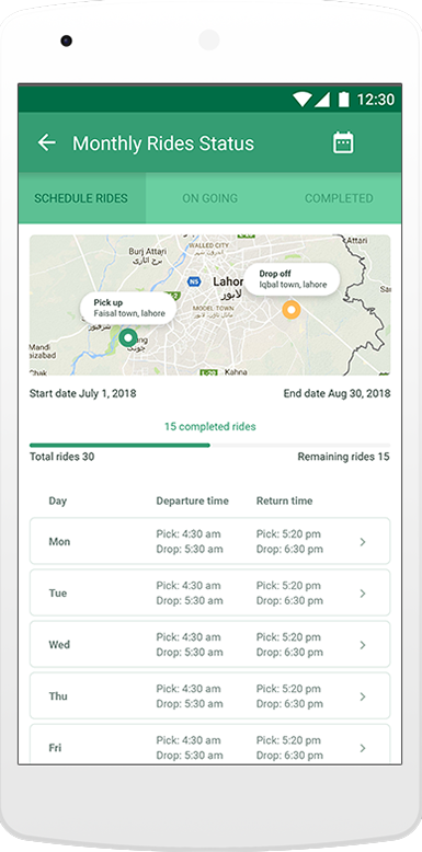 Shahi Sawari monthly pick and drop services are designed for daily commute to and from school, college and workplace while keeping convenience, safety and affordability in mind..